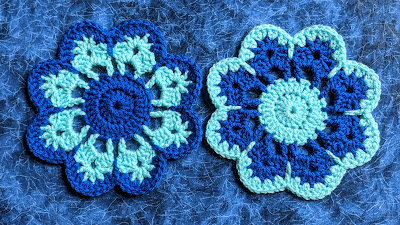 I have an odd habit. Whenever I find a crochet pattern I like with multiple colours, especially flowers, I feel compelled to make pairs of them with the colours in opposite order. Bizarre n'est-ce pas ?